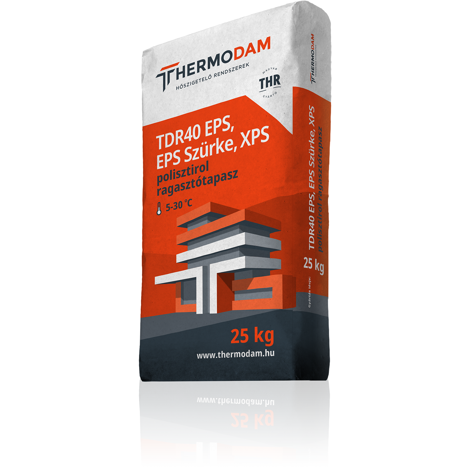 | Keverési arány | 25 kg Thermodam ragasztó porhoz kb. 6,5-7 liter víz | |